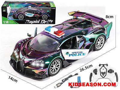 2.4G+UV喷镀+灯光+开车门五通1:14遥控警车布加迪(包电)