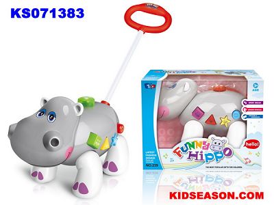 ELECTRONIC MUSICAL CARTOON ANIMAL HIPPO WITH PULL AND PUSH HANDLE
