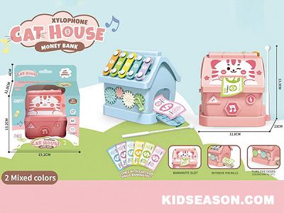 MULTIFUNCTION EDUCATIONAL CAT HOUSE MONEY PIGGY BANK XYLOPHONE MUSICAL INSTRUMENT TOY