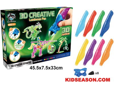 GROW IN DARK KIDS EDUCATIONAL DIY MAGIC 3D CREATIVE DRAWING & PRINTING PEN TOYS(EIGHT 3D PENS)
