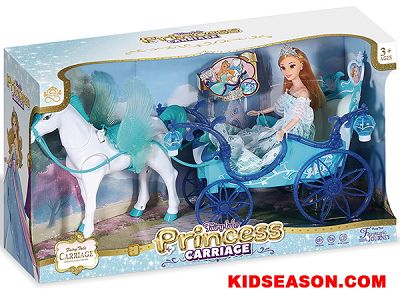 29CM SOLID BODY FASHION PRINCESS DOLL WITH ELECTRONIC CARRIAGE TOY WITH LIGHTS AND SOUND OF HORSE HOOVES