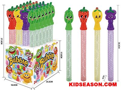 DESC: | 37.5CM 120ML FRUITS BUBBLE WAND TOYS | |