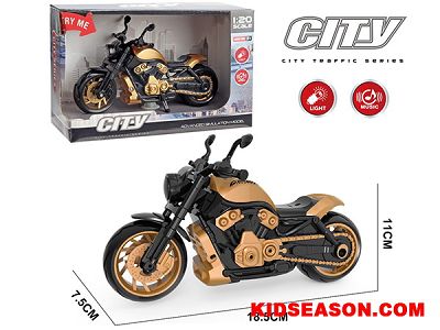 | DESC: | 1:20 SCALE LIGHT UP & SOUNDS FREE WHEEL HARLEY MOTORCYCLE TOYS - GOLDEN | |