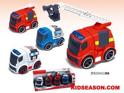 ABS MATERIAL MINI FRICTION CITY RESCUE CAR TOYS WITH LIGHT AND SOUNDS - POLICE,FIR RESCUE & AMBULANCE(4PCS/BOX)