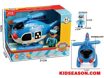 | DESC: | FRICTION POWER SOUNDS AND LIGHTS UP POLICE HELICOPTER AND DOLL TOYS | |