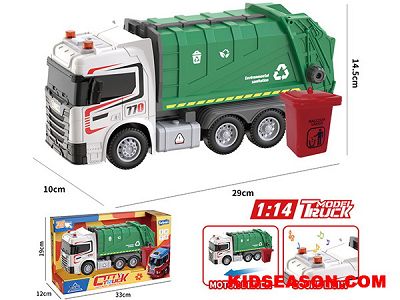 1:14 SCALE 29CM LIGHT UP & MUSIC FRICTION SANITATION TRUCK TOYS