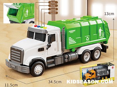 34.5CM LIGHT UP & MUSIC SOUNDS KNOWLEDGE FRICTION SANITATION TRUCK TOY