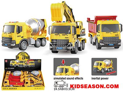 | DESC: | 1:18 SCALE LIGHT UP & SOUNDS INERTIA MIXER,EXCAVATOR & DUMP TRUCK TOYS SET (6PCS/BOX) | |