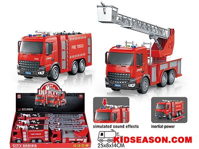 1:18 SCALE LIGHT UP & SOUNDS INERTIA FIRE RESCUE TRUCK TOYS SET (6PCS/BOX)