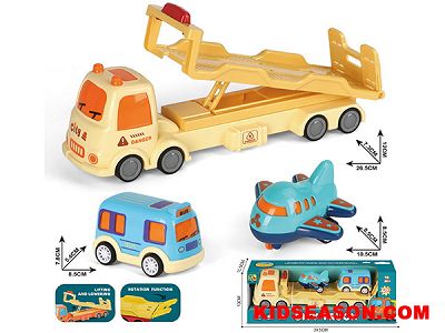 | DESC: | INERTIAL CARTOON TRANSPORT FLATBED TRUCK TRAILER BUS & PLANE TOYS SET | |