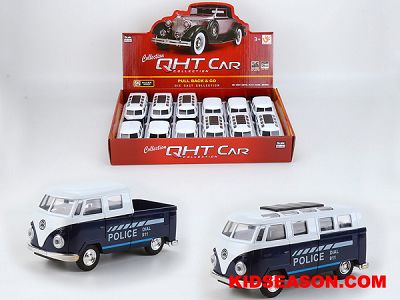 1:32 SCALE PULL BACK DIE-CAST CLASSICAL T1 BUS & PICK UP TRUCK POLICE CAR MODEL(12PCS/BOX)