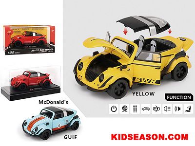 DESC: | 1:32 SCALE DIE-CAST ALLOY SOUNDS LIGHTS DOORS OPENED MODEL BEETLE CAR TOY | |