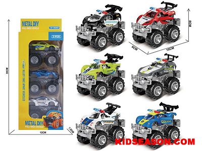 10CM PULL BACK BIG FOOT MONSTER DIE-CAST POLICE CAR TOYS SET(3PCS/BOX)