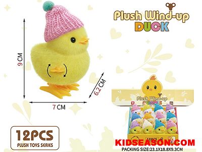 12PCS WIND UP PLUSH DUCK WITH CAP TOY