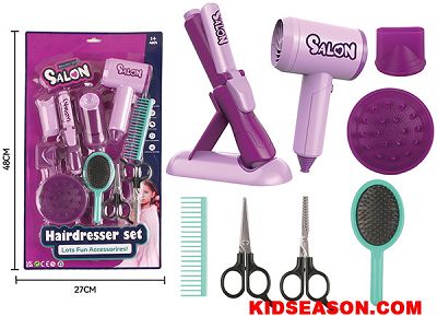 | DESC: | 10PCS PRETEND PLAY DIY HAIR SALON BARBER HAIR CLIPPER TOY DRESS UP SET | |