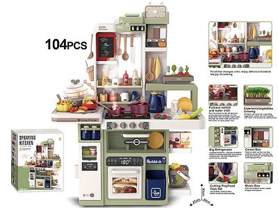 104PCS 93CM PRETEND PLAY MUSIC LIGHTS SPRAYING WATERING FOODS CHANGE COLOR KITCHEN TABLE TOY