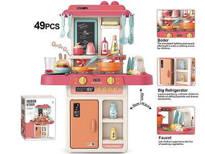 49PCS 63CM PRETEND PLAY LIGHTS WATERING FOODS CHANGE COLOR KITCHEN TABLE TOY