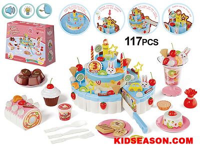 117PCS PRETEND PLAY MUSICAL AND LIGHTS DIY CUTTING BIRTHDAY CAKE TOY FOR BOYS