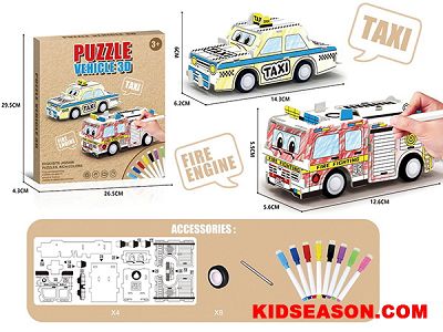 | DESC: | DIY 3D PUZZLE TAXI & FIRE ENGINE VEHICLE TOYS WITH 8PCS PAINTING PENS | |