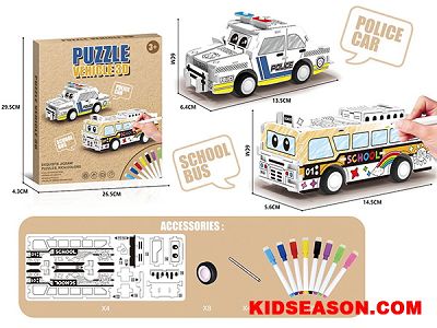| DESC: | DIY 3D PUZZLE POLICE CAR & SCHOOL BUS VEHICLE TOYS WITH 8PCS PAINTING PENS | |