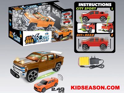 | DESC: | 2 IN 1 REMOTE CONTROL 3D LIGHT UP & MUSICAL 2.4G R/C CHEVROLET CITY SPORT AND OFF-ROAD SUV CAR TOYS | |