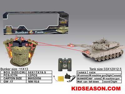 27MHZ 1:28 SCALE 9-CH R/C SHOOTING INFRARED RAY AMERICA M1A2 ABRAMS MAIN BATTLE TANK VS BUNKER TOYS