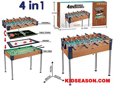 | DESC: | 86CM 4 IN 1 MDF MATERIAL WOODEN FOOSBALL,TABLE TENNIS,HOCKEY & BILLIARD TABLE GAME TOYS | |